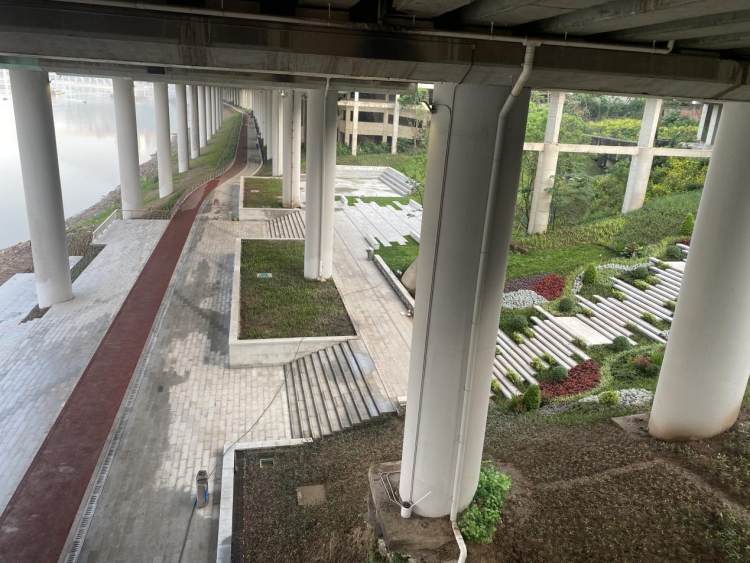 算作“两江四岸”治理普及嘉陵江岸线判辨工程,全长5.3公里的土湾至表象公园滨江绿说念串联红岩村大桥至国富沙磁巷,通过生态建设与创意筹备,将昔日库岸瘠土、高架桥劣等城市“灰空间”转动为市民失业游憩的生态廊说念,成为嘉陵江畔又一亮丽自满线。