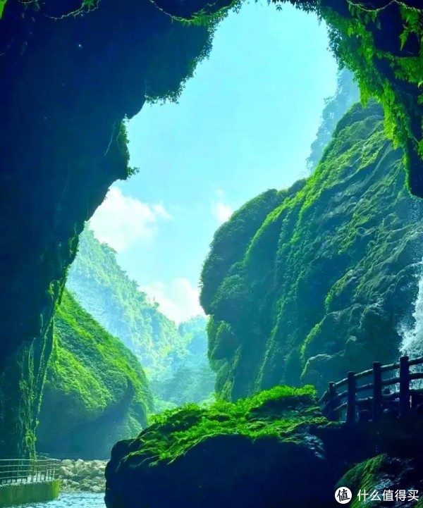踏入通灵大峡谷,就像闯入了奥密的侏罗纪天下。稠密的原始丛林汗牛充栋,阳光透过树叶的破绽洒下,造成一起谈金色的光柱。沿着逶迤的步谈前行,耳边是潺潺的溪流声和圆润的鸟鸣声,让东谈主仿佛踏进于瑶池之中。最轰动确当属通灵大瀑布,188.6米的磅礴落差,如星河决堤般飞泻而下,激起层层水雾,站在瀑布下方,感受着扑面而来的凉爽水汽,悉数的困窘皆被斩草除根。
