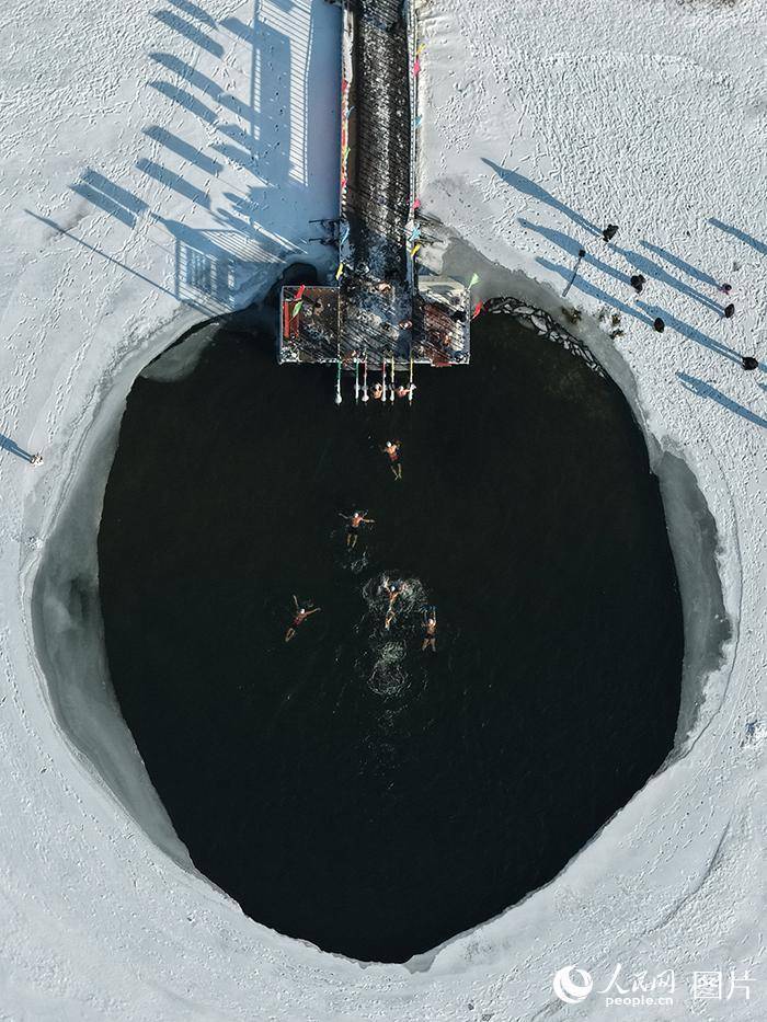 2026年1月10日,一群冬泳喜爱者在吉林长春南湖公园畅游。东谈主民网记者 李洋摄