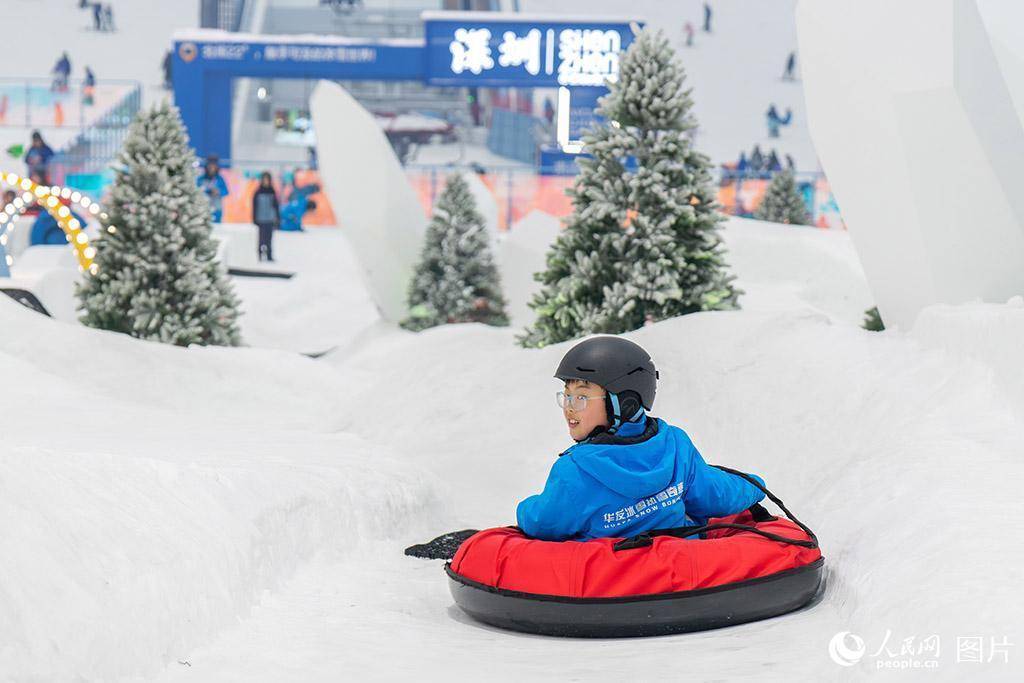 深圳前海冰雪世界内,小一又友原意的在雪上玩耍。东谈主民网 王星摄