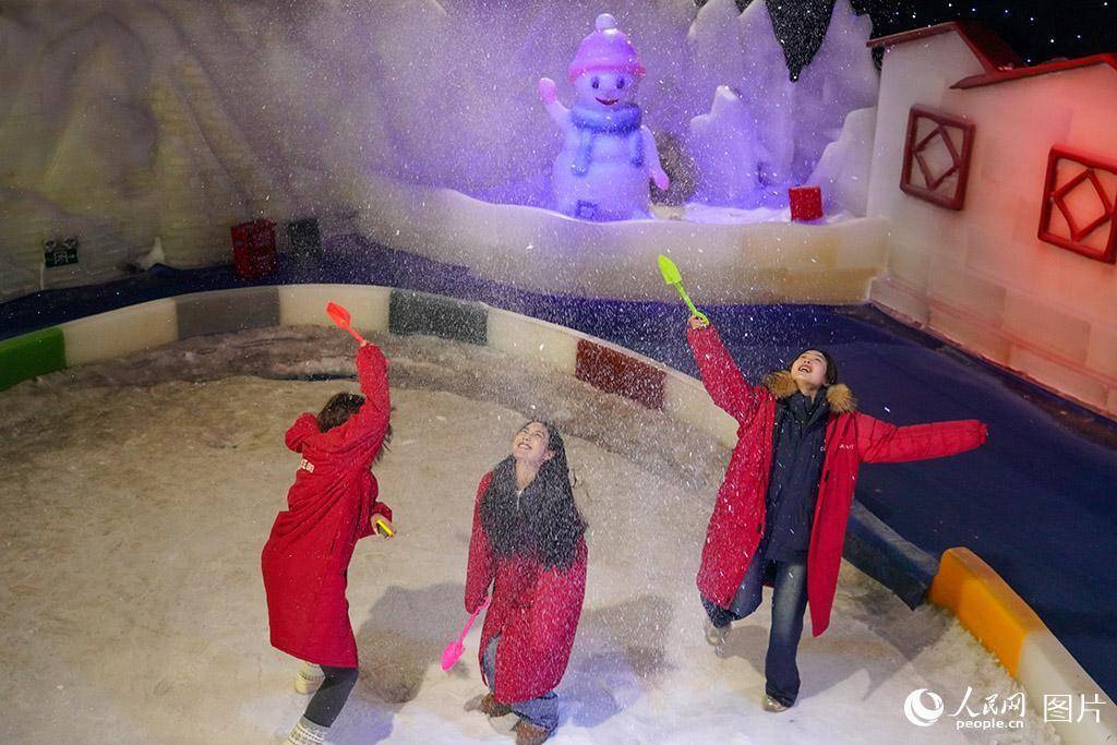 2026年1月27日,在浙江宁波江北区甬江街谈达东谈主村,市民在室内冰雪乐土原意玩耍。东谈主民网 章勇涛摄