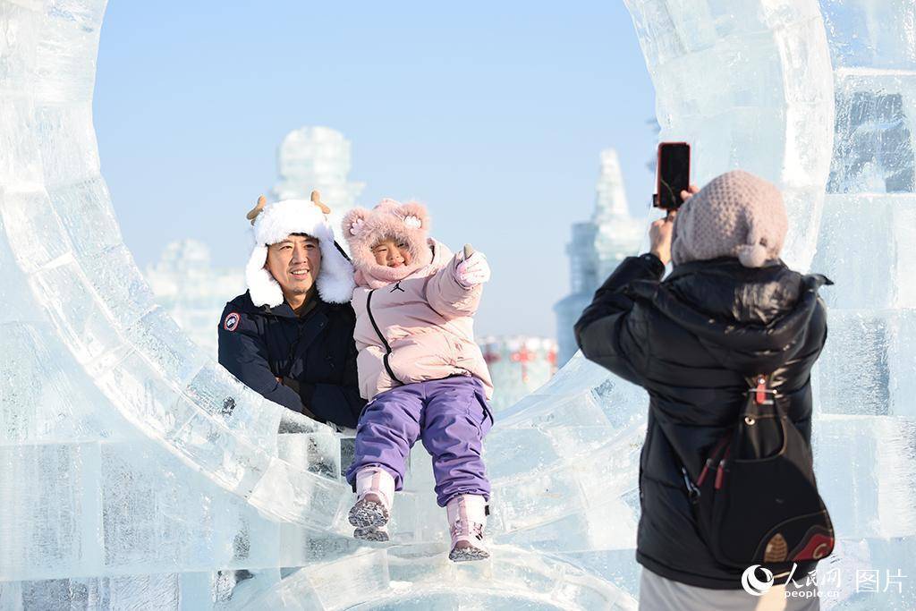 一家三口在哈尔滨冰雪大世界内打卡拍照。东谈主民网记者 徐成龙摄