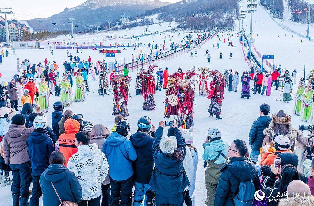 2025-2026雪季,河北张家口太舞滑雪场变身千里浸式舞台,大型民族歌舞《盛世契丹·春捺钵》首演眩惑繁多滑雪喜爱者驻足不雅看。东谈主民网记者 李兆民摄
