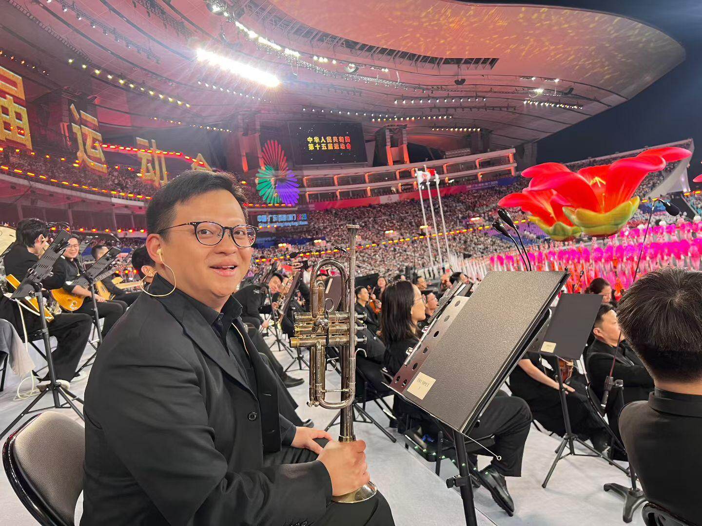 十年来,杨捷的小号声恒久与广州这座城市同频共振。从白云海外机场T3航站楼首航的欢叫,到十五运会开幕的荣耀时刻,他的飘荡乐声一次次融入城市跃动的脉搏。