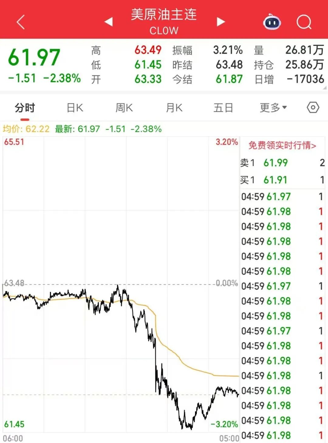 本周,国外油价呈现“先涨后跌”的震憾行情。周五,WTI原油期货主力合约收跌2.38%,报61.97好意思元/桶,最近3个交畴昔跌超5.5%。