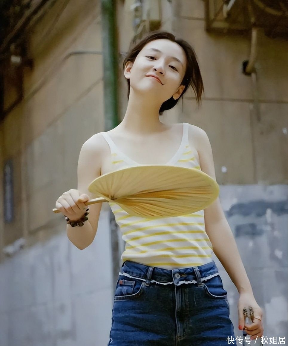 像片中,她穿戴一件黄色上衣搭配短裤,举座造型朴素低调,简直与普通东谈主无异。