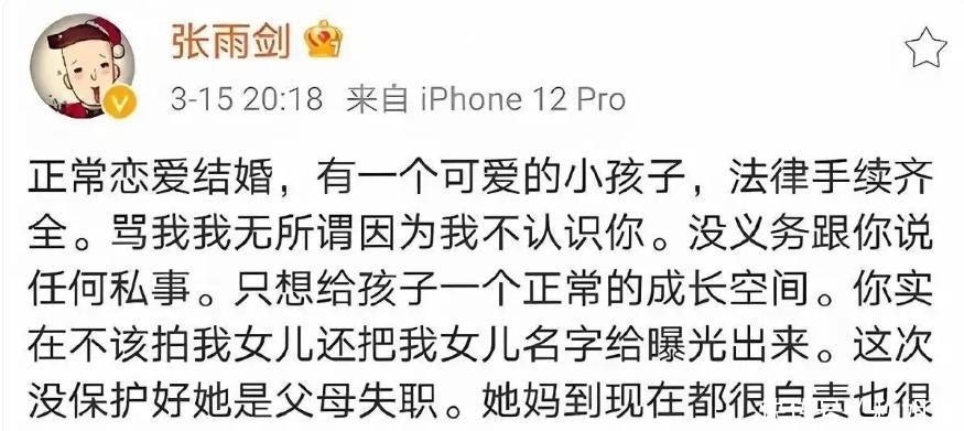 尽管领先两边皆未正面回答,但最终张雨剑发文承认了与吴倩成亲并育有一女。