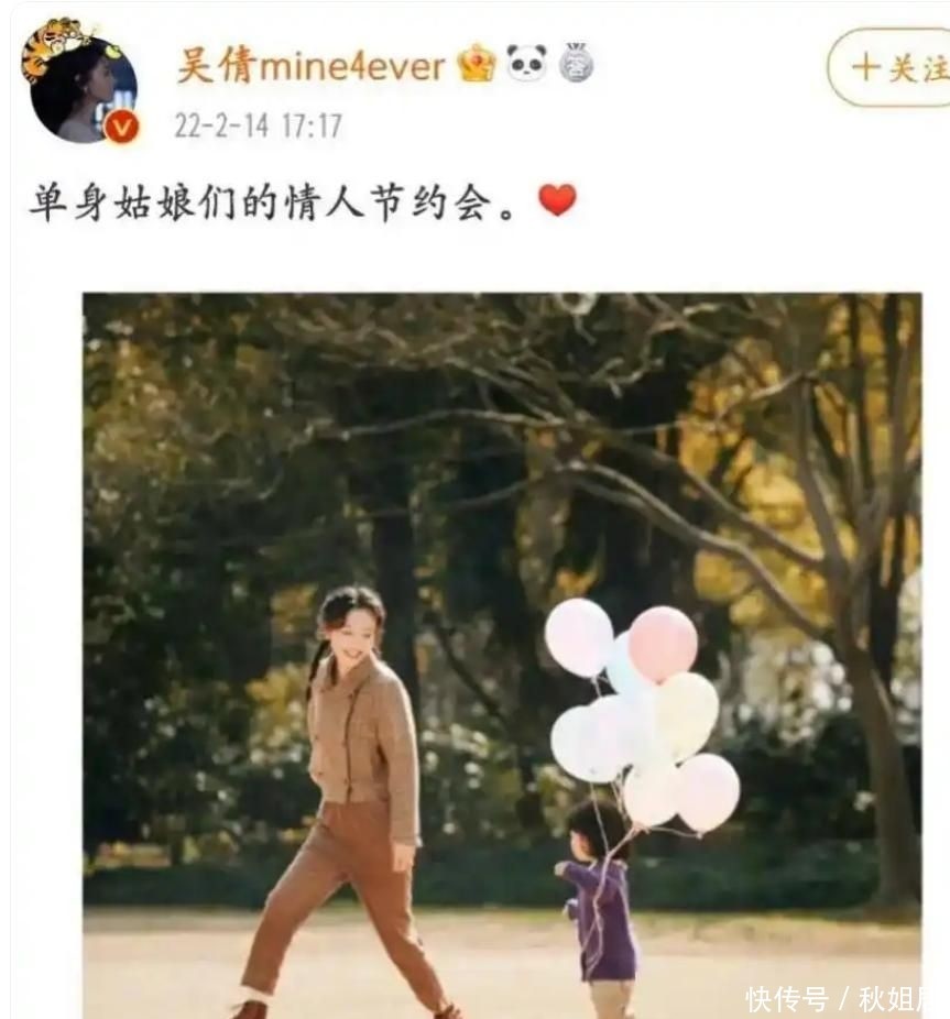 直到2022年情东谈主节,吴倩晒出与男儿的合照,并配文“光棍女孩的情东谈主省俭会”。