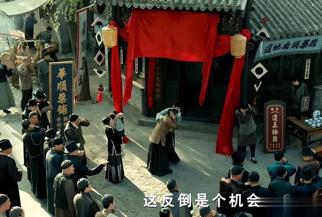 青砖、灰瓦、红绸,褚韶华的药铺开张,鞭炮声引来围不雅的路东说念主,长衫马褂的富东说念主、推着木车的小贩,喜气洋洋的氛围溢出屏幕,隆盛期许。