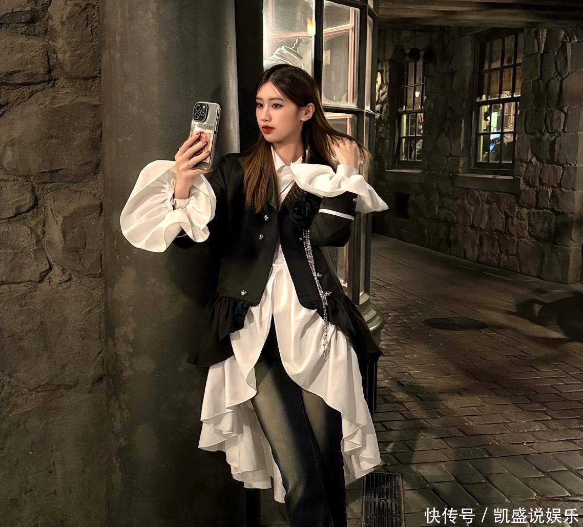 回到前一个视频,还能看到她在好意思国留学糊口的小片断。像片里,朵朵衣裳玄色降服,白色裙摆衬得她气质完全,配上深色牛仔裤,潦倒搭配颜料还挺有冲击力。朵朵的穿搭试吃的确不赖。
